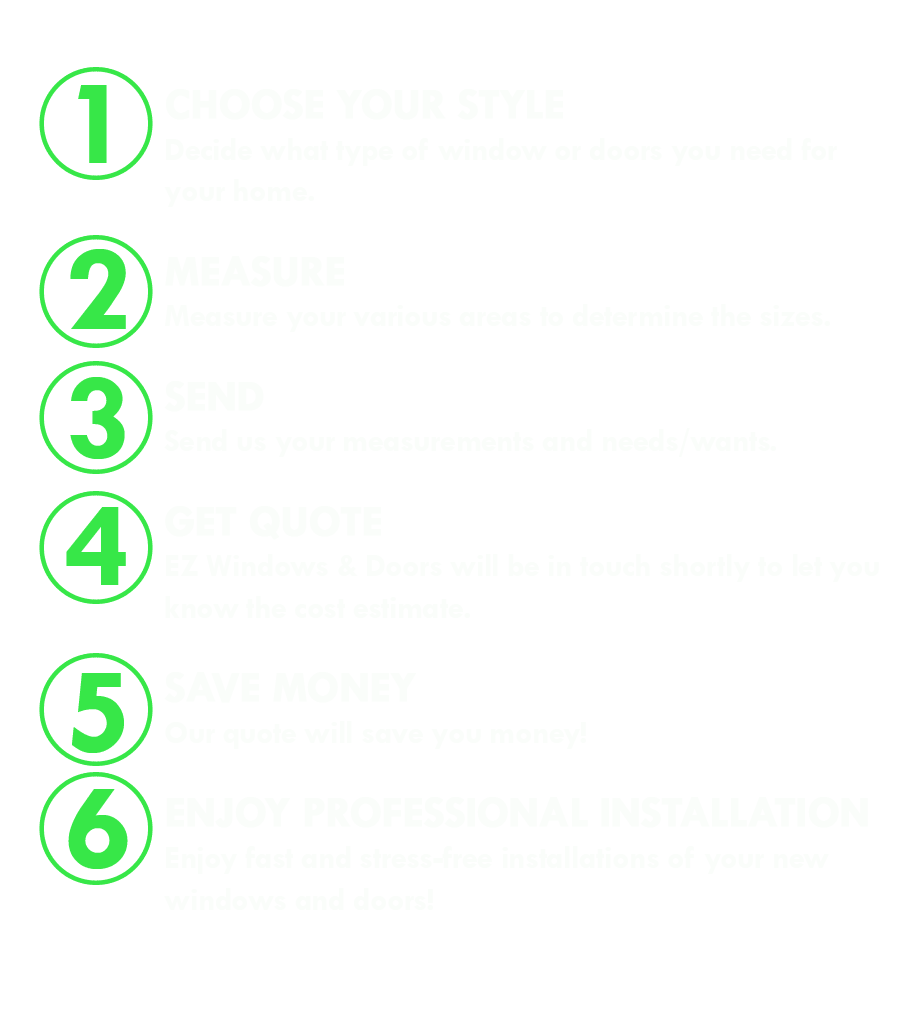 EZ Windows & Doors make it easy! Just follow the simple instructions and be on your way to new, energy efficient windows and doors while saving money!
